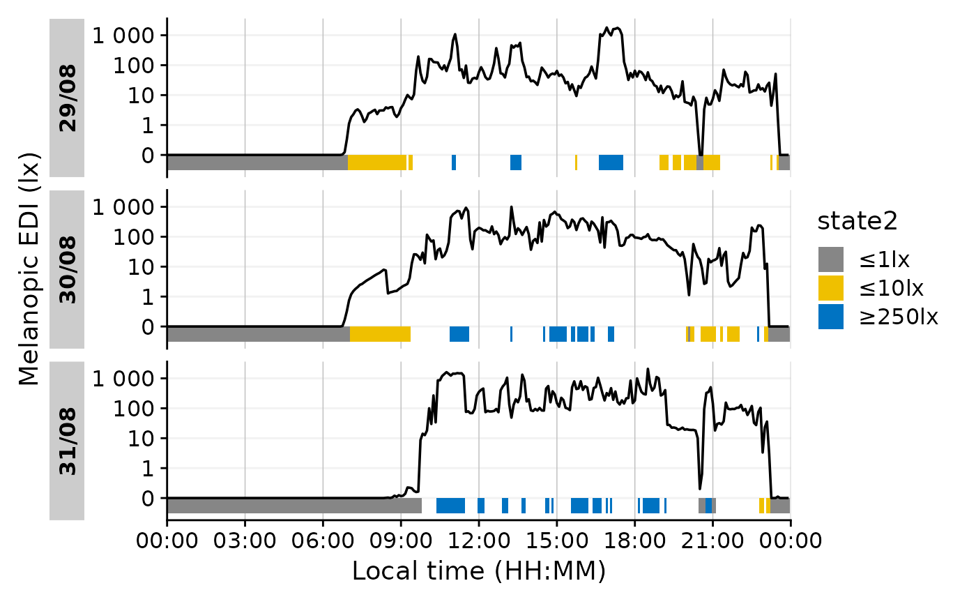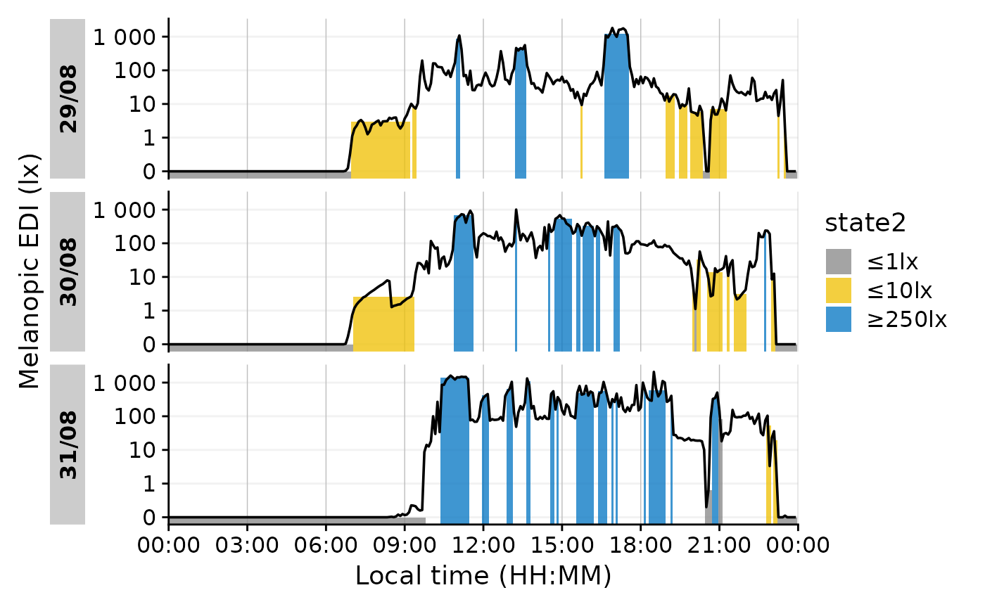 #creating a simple TRUE/FALSE state in the sample data: Light above 250 lx mel EDI